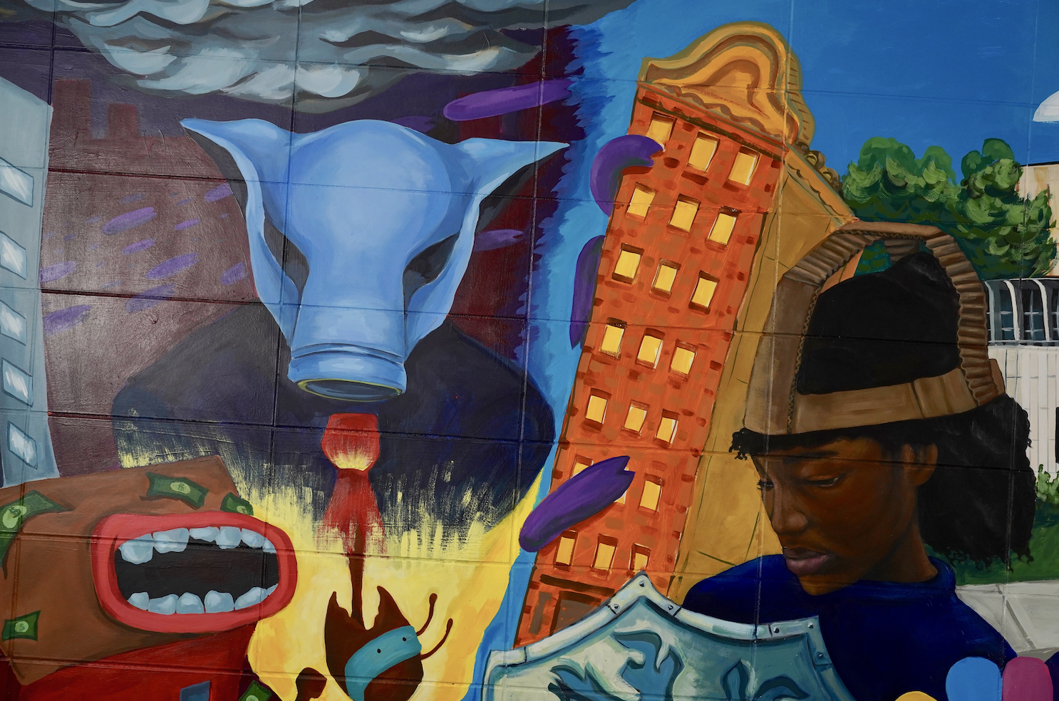 “Defending Public Spaces,” 7’ x 17’, Acrylic Mural, Brooklyn, 2025