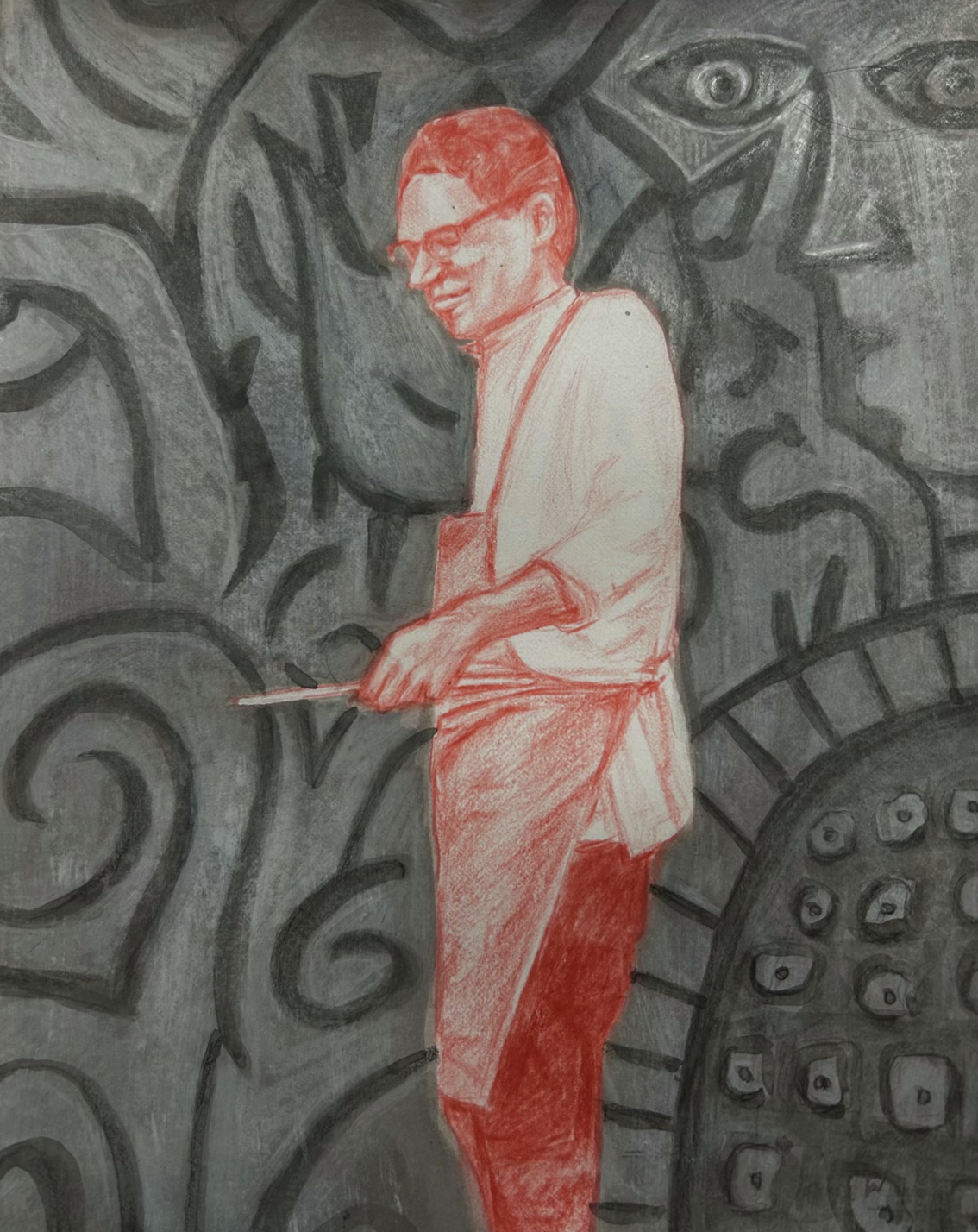 Self Portrait, 60” x 40”, Acrylic on Plexiglass, Brooklyn, 2023